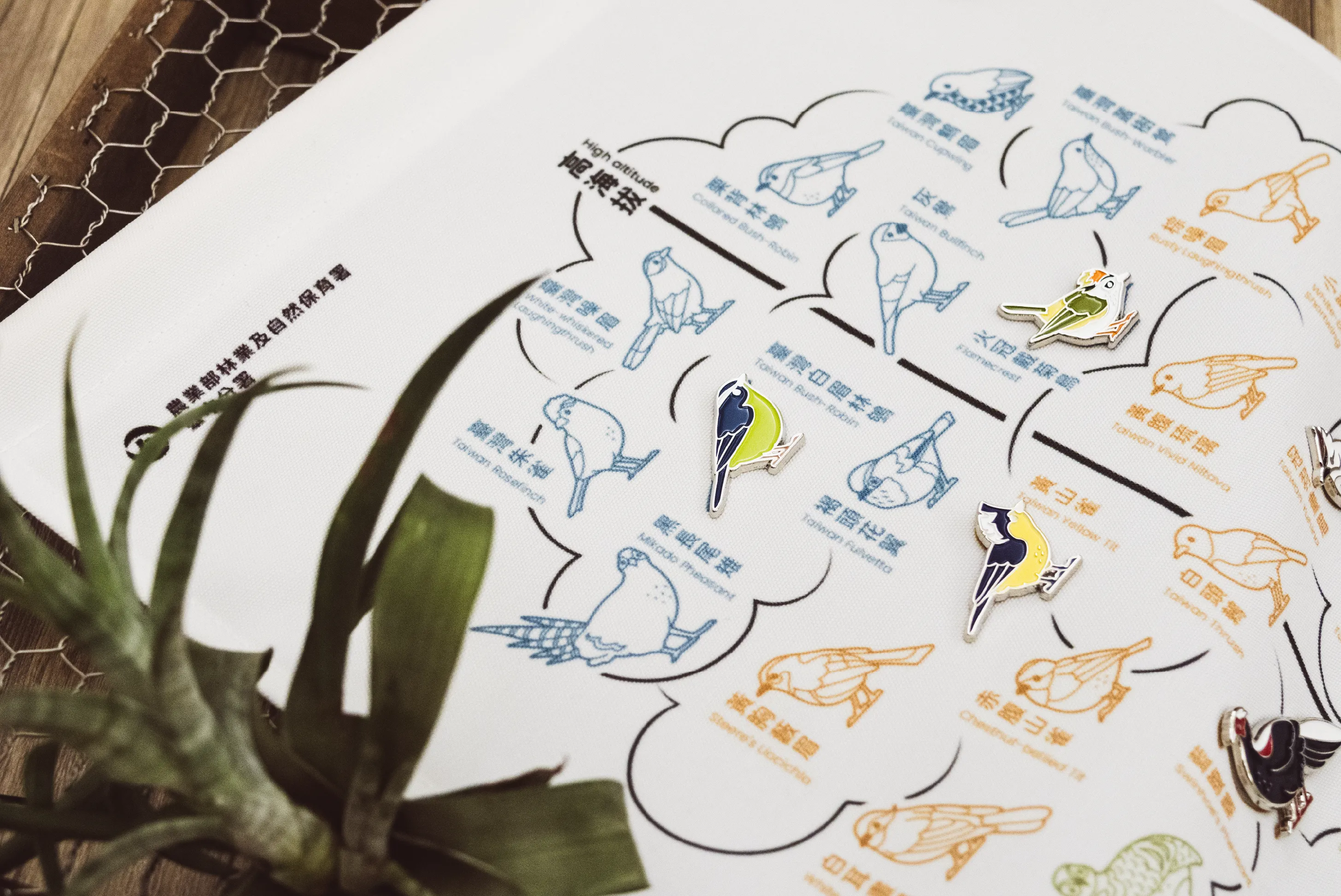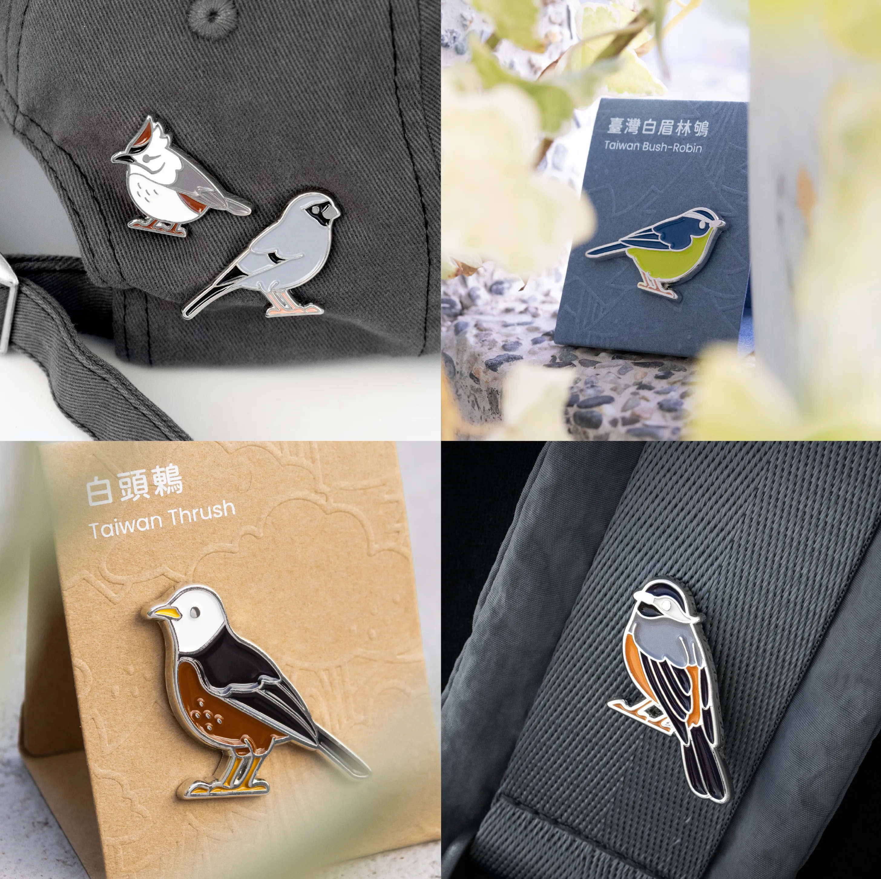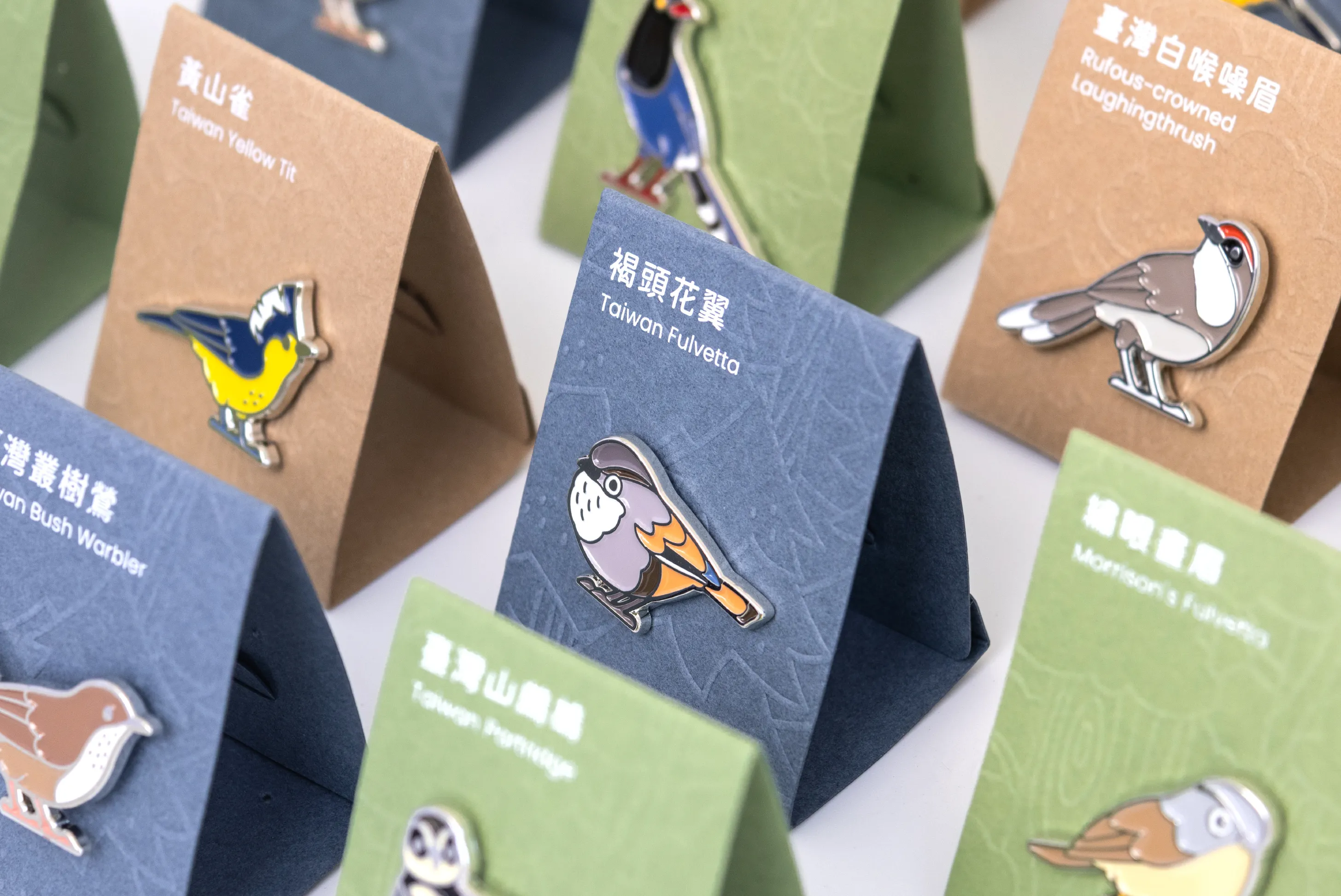 我們與林保署台中分署合作,以臺灣32種特有鳥類為主題,設計32款金屬徽章。